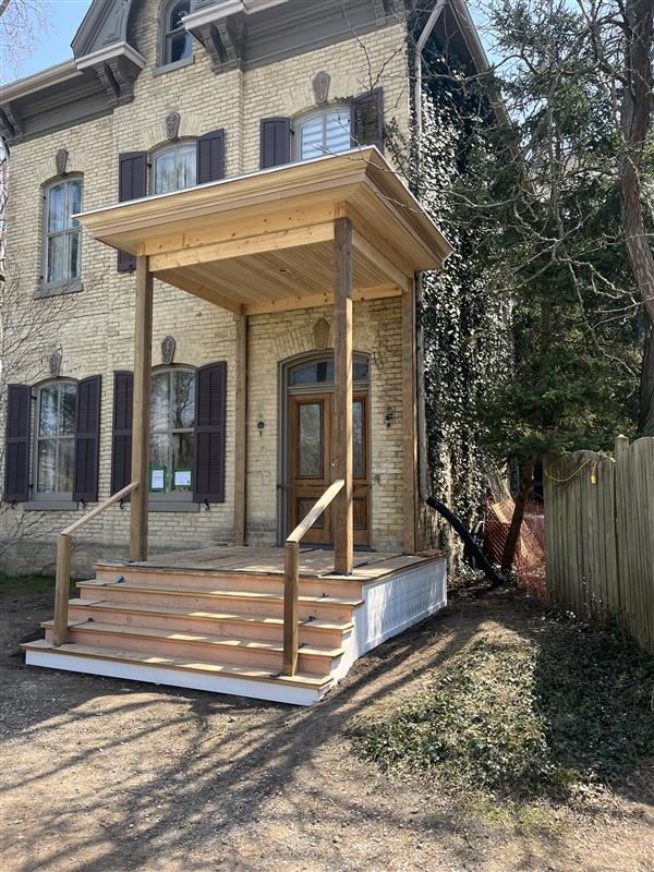 The front porch reconstruction began with our site crew handling demolition and framing, laying the groundwork for a thoughtful restoration. Our cabinet shop then completed the project with carefully crafted heritage details, including a beautiful new front door fitted with the home’s original glass.